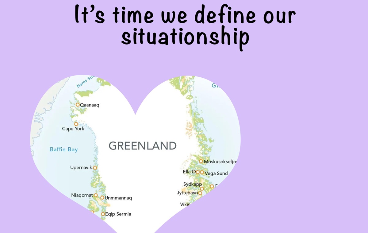• острів Гренландія із підписом: “Час визначити наші стосунки”;